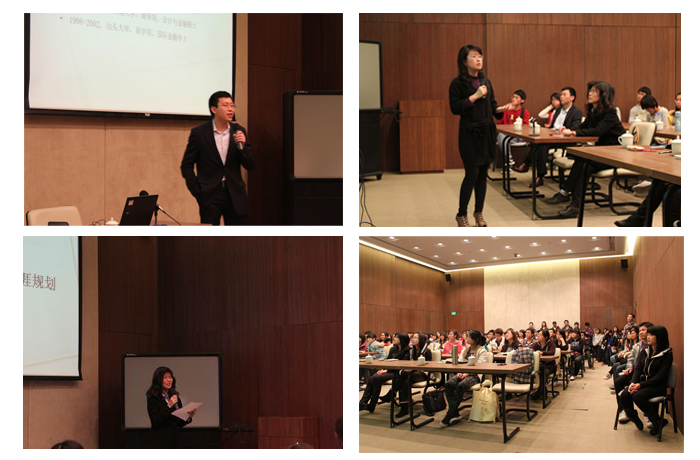 从我的留学之路看大学生职业生涯规划 2011年3月31日下午,商学院2002届国际金融专业叶其昌、方丹校友伉俪以“从我的留学之路看大学生职业生涯规划”为主题,与汕大师生们分享了他们留学和求职的点滴。本期校友大讲堂由林佳丽副教授主持,林丹明教授、孟繁邨老师、崔薇薇老师出席第十期校友大讲堂,两位校友良好的求学背景吸引了许多同学到场。 叶其昌校友拥有丰富的求学经历。讲堂上,他详细地向大家介绍英国高等教育制度并和同学们分享留学时的所见所闻所想。从汕大商学院国际金融专业本科毕业,然后考取英国政府奖学金获得伯明翰大学会计金融学硕士,接着又获剑桥大学房地产金融学硕士,最后获伦敦大学国王学院经济学博士,这一路走来无不渗透着他对生活、对自我的追求。 方丹校友用一张张有趣的图片和大家分享了他们在英国留学美好的时光,向大家展示了留学时丰富的课外生活。她分别从求职前多积累实习经验、实地调研水平、案例分析能力、谦虚诚实等四个方面向大家传授求职经验。她还对她从事的房地产私募基金、投资银行、会计师事务所等行业做了简单介绍,让大家更加了解这些与商学院同学求职相关的行业。 这次校友大讲堂是两位校友对自己的求学经历和自我追求的一次梳理,也是对在座同学们难得的一场职业生涯规划课堂。结束时,同学们用热烈的掌声表达对师兄、师姐的感谢。